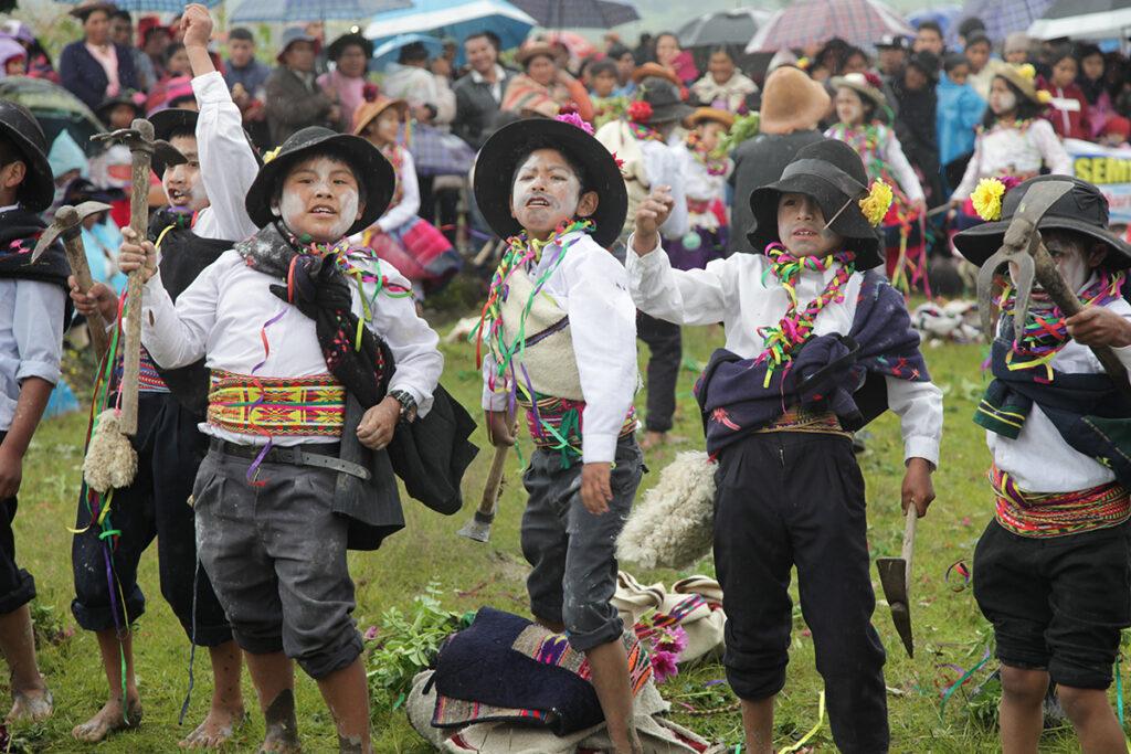Campesinos de distintos lugares se encuentran en Sapallanga y se pasan la voz: “Tu papita está hermosa, ya está floreando”, “la alverjita ya está para cosechar”, “el maicito ya está”, “que no te ganen las avecitas”. Así se decide cuándo hacer el akshu tatay. Primero se cultiva. Después se baila. Se baila en grupo, en alegría, en armonía. Eso es lo que se dice y eso es lo que se hace.