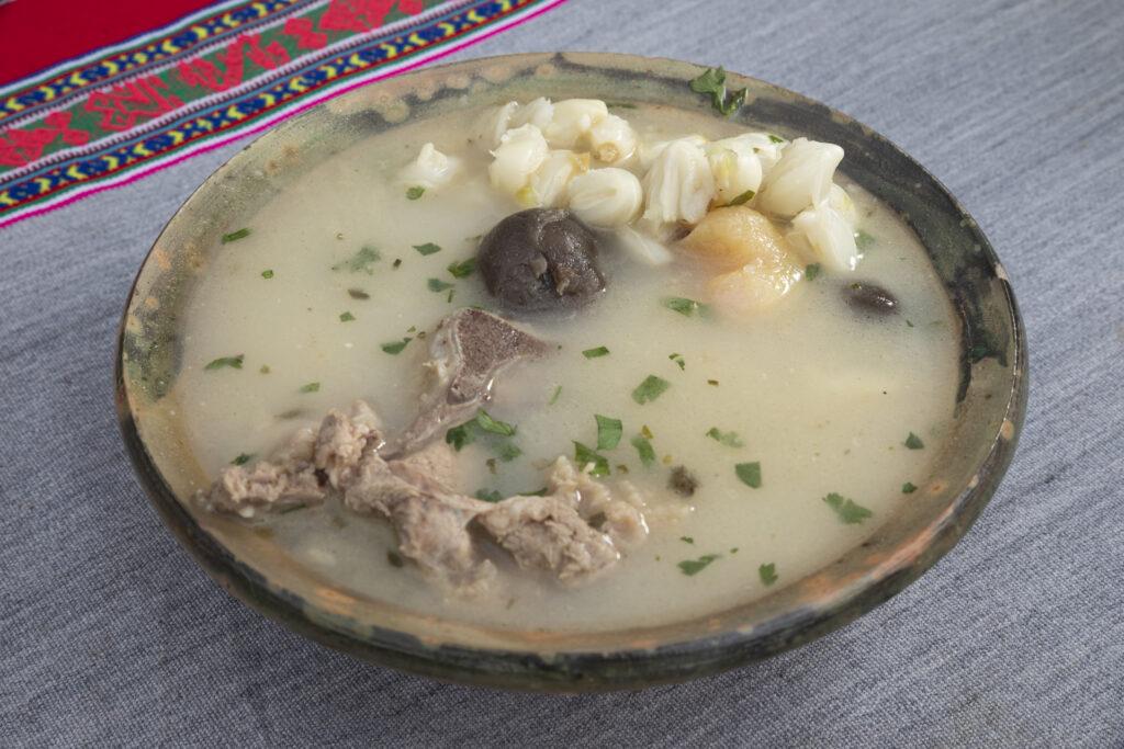 También está el llulloapi, la mazamorra emblemática del lugar. Pero no es dulce como las que conocemos en la ciudad: este llulloapi salado combina habas, papa, carne fresca de cordero y una planta tradicional llamada chicchimpa, que perfuma el guiso y le da su carácter andino.