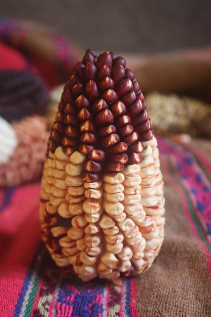 El maíz cabanita nace en los campos altos de Cabanaconde, donde el aire es frío y el sol golpea con fuerza. A más de 3,000 metros sobre el nivel del mar, resiste con la paciencia de quien entiende los tiempos de la montaña. Su mazorca, cónico-cilíndrica y de tamaño mediano, despliega una paleta que va del blanco al rojo, y en algunos sembríos asoma una variante anaranjada oscura, fruto de la misma tierra y de la misma fe en la siembra.