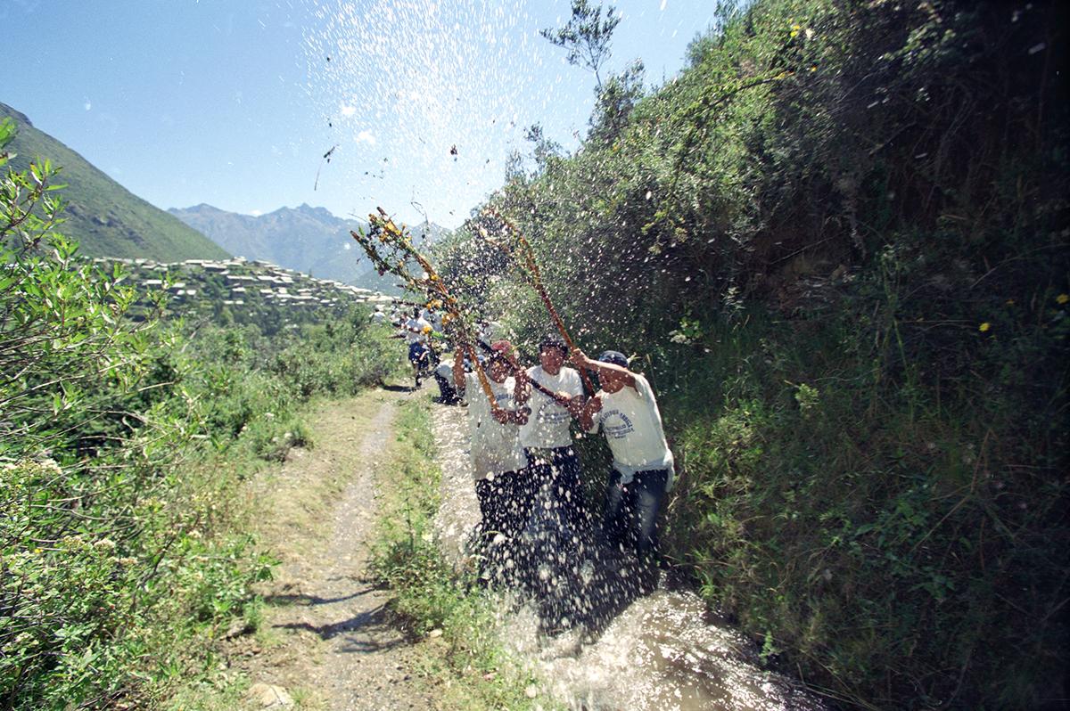 Tanto el juez de aguas como los principales participan en varios ancushos, pagos rituales a la pachamama y al agua. Se ofrendan frutas como granadas y membrillos. Hay un día reservado para limpiar las acequias y otro para una carrera simbólica desde el punto de suelta del agua hasta el pueblo. Si en esta competencia entre el juez de aguas y los principales, gana la bandera, es augurio de buen año. Pero si gana la callapa, se considera señal de malas cosechas. Así dicen.