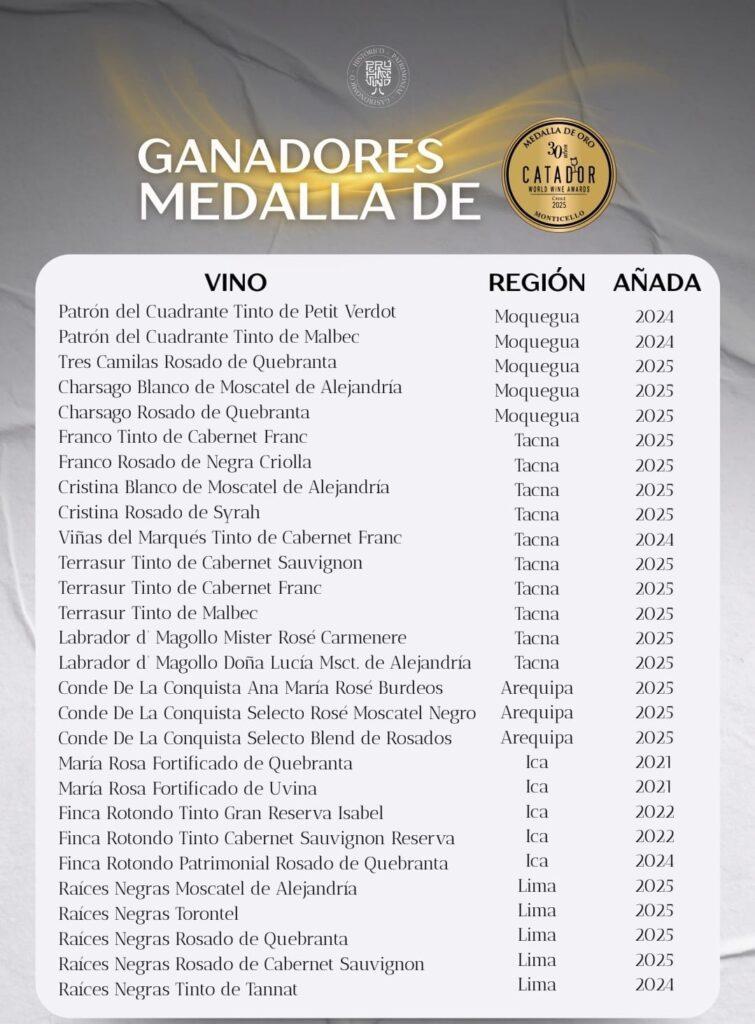 Mientras en el Perú aún persisten dudas sobre la calidad del vino nacional, su avance no se detiene, especialmente en la recuperación y producción de vinos con nuestras variedades patrimoniales y criollas. Ese esfuerzo ya trasciende fronteras con 28 medallas de oro obtenidas en el Catad’Or World Wine Awards 2025 en Santiago de Chile.