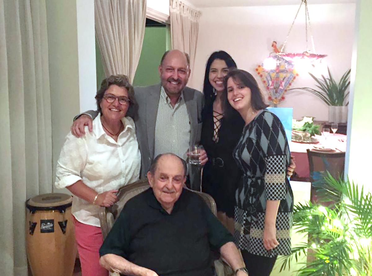 Biblioteca gastronómica. Retrato de familia: don Carlos junto a sus hijos María Julia y Carlos, y sus nietas Alana Jackson Raffo y Cristina Fyfe Raffo.