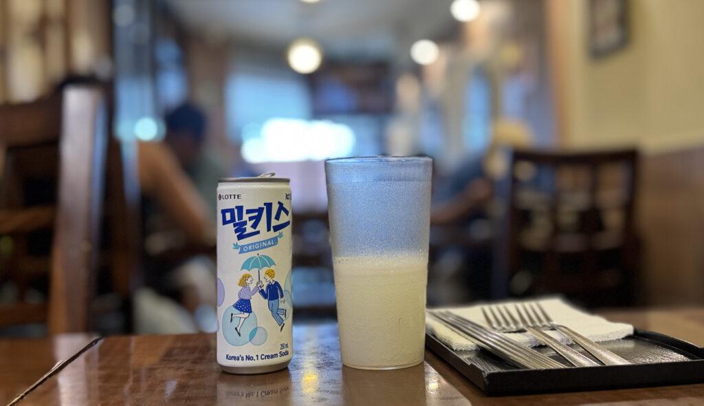 C.C. Arenales. Bebida gasificada de leche, un clásico en restaurantes y tiendas coreanas. Tomar bien fría.