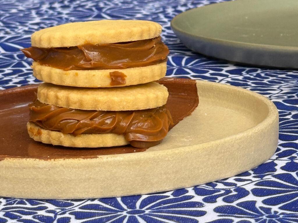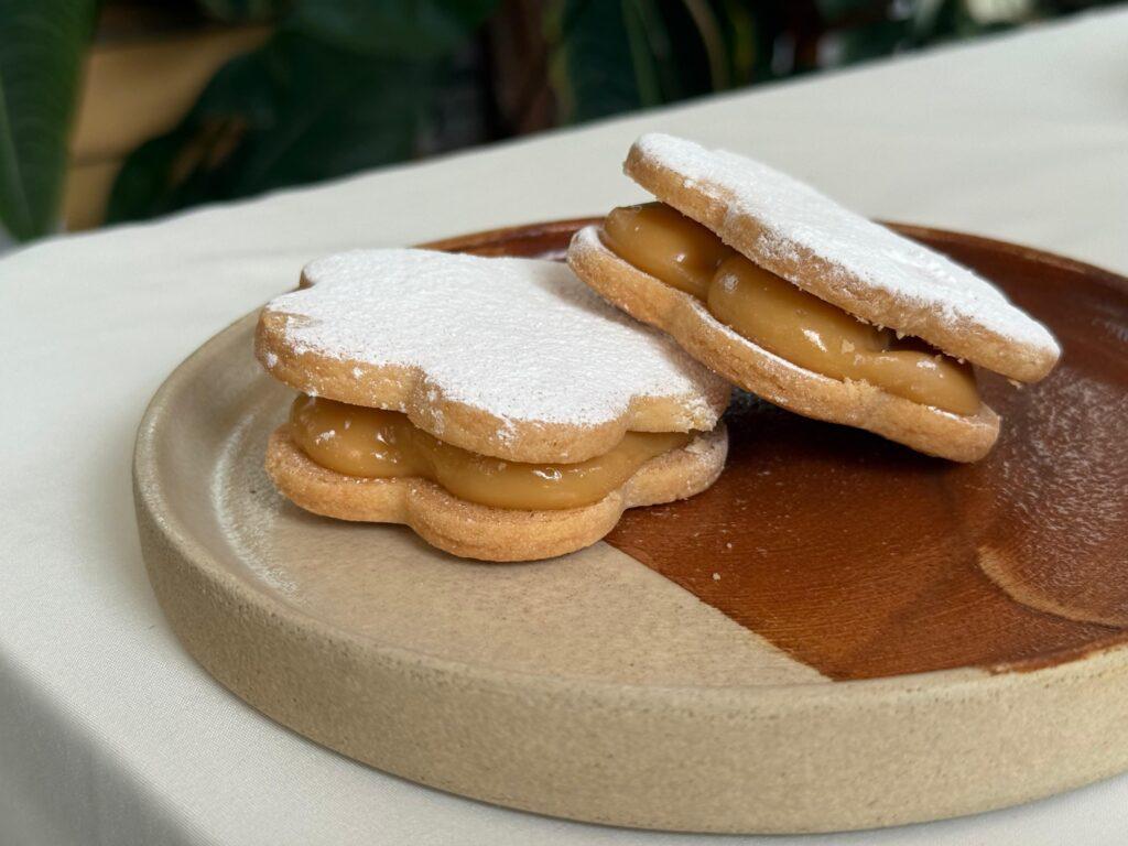 • El equilibrio. Al manjar se suma la masa. Harina, almidón, maicena, mantequilla. Un toque de sal para contrarrestar el dulce. El azúcar en polvo, pero no tanto: una masa bien trabajada, fina, y un horneado preciso.