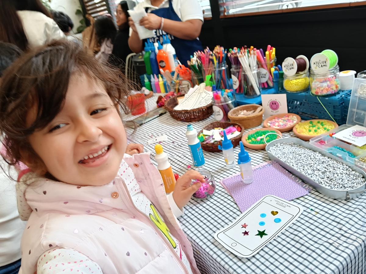 Podría decirse que El Atelier de Cami surge de una necesidad. Los padres y madres queremos pasar tiempo con nuestros hijos y las opciones de que nuestro café o comida se enfríen mientras ellos comen es alta. Es cuando Camila Romero y su equipo intervienen para que evitemos “tranquilizar” a los pequeños entregándoles un celular. El resultado: una mesa especial en medio del restaurante -durante el desayuno o el almuerzo- a la que los niños se acercan libremente a colorear, pintar con acuarelas, crayolas, elaborar pulseras, y hacer los famosos ‘slime’ atendidos por amables talleristas del atelier. Un buffet de materiales con variedad de opciones, además de espacios en los que con diversos materiales los más pequeños desarrollan su creatividad.