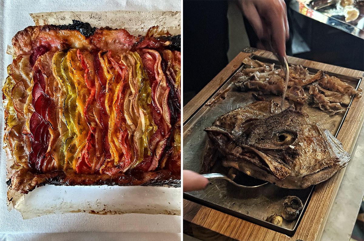 Pablo Rivero. Tarta de frutos y tomate en El Preferido. Cocochas y cabeza de pescado acompañaron al tomate en el almuerzo organizado por Elkano en Don Julio.