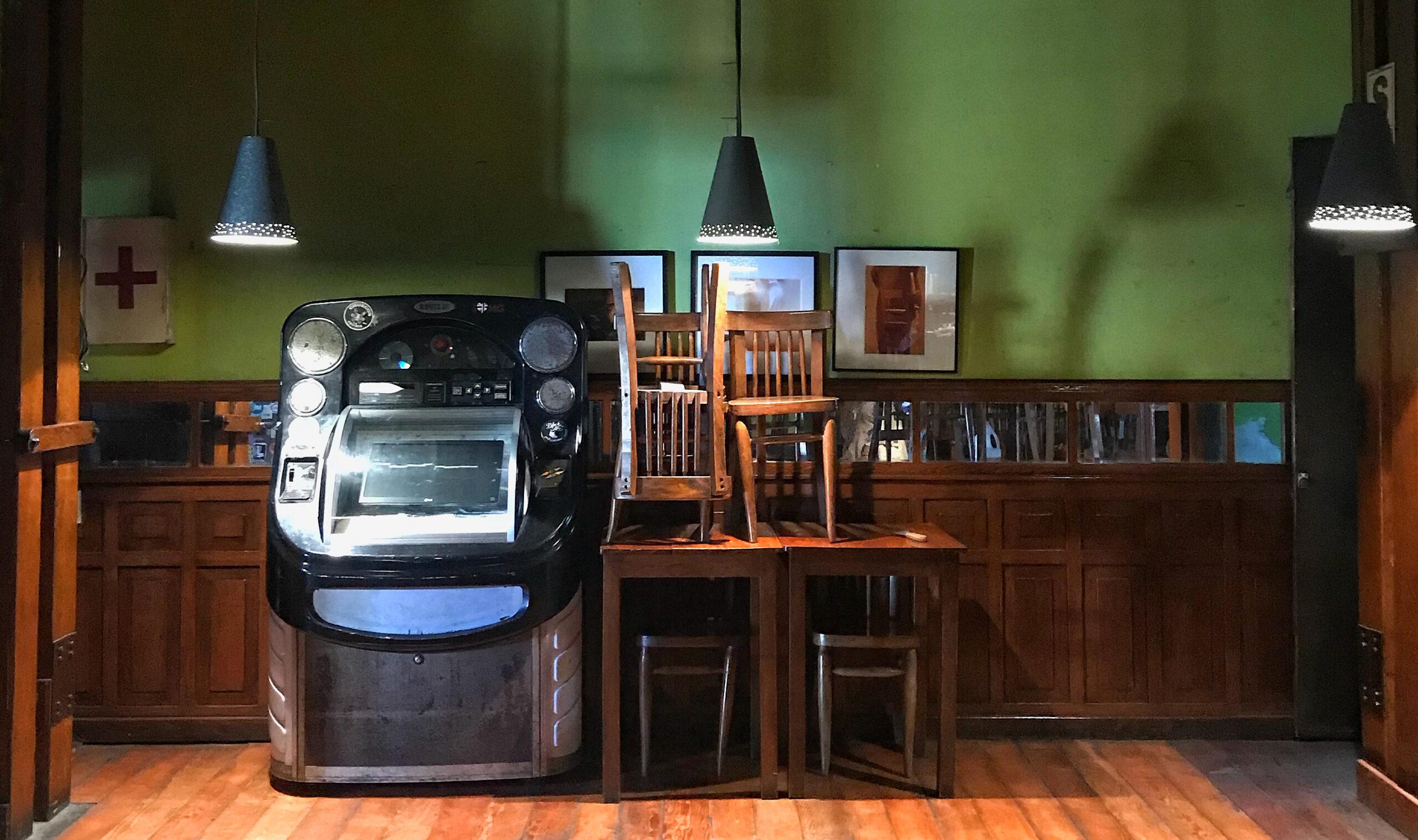 Los bares de siempre. Arriba: ondulante barra del bar del Hotel Maury. Abajo: rocola del bar La Noche en Barranco.