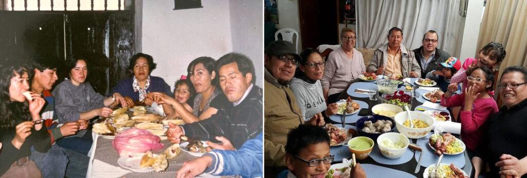 Samanez afirma que el pavo en la mesa navideña del Cusco es una costumbre reciente, extendida y heredada de Lima, que podría tener 10 o 15 años. Pero también nos dice que estuvo averiguando con otras familias acerca de lo que una mesa navideña típica cusqueña suele incluir. “De ensalada, escabeche, que en el Cusco es un encurtido de coliflor, zanahoria, cebolla, arvejas con vinagre, sal y pimienta”. Y agrega: «en mis fotos de hace 20 años también ponían en la mesa pan de Oropesa, pan chuta. Un infaltable en una mesa navideña cusqueña, porque en el Cusco no existía el panetón. Esto es algo que llega de la capital”. ¿Qué más hay en la mesa de Navidad cusqueña?: arroz recién preparado, papa amarilla, chocolate cusqueño, especialmente de Quillabamba, trozos de queso, incluso cuy.