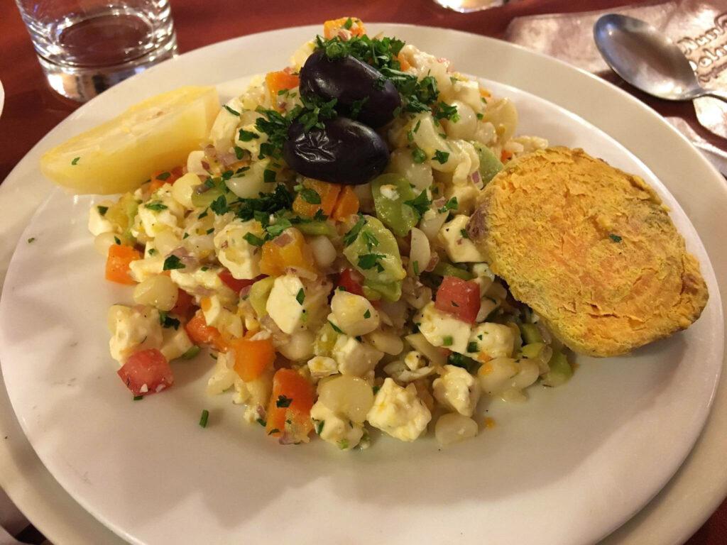 Más adelante se comenzó también a hacer lo mismo con el pavo. Y lo que ocurría mientras en el horno se alistaba el platillo de fondo, la picantera lo cuenta como si escribiera un cuento: “se hacían unas ensaladas muy ricas de papa, se la hacía cocer junto con una cebollita; una verde, o sea guagüita, con tomatito, sazonada con vinagre, pimienta, sal, muy semejante al famoso Escribano arequipeño. Una simple ensalada muy arequipeña de papa”, cuenta, y agrega que la ensalada de pallar también es otra opción, además de la de liccha, hierba que describe como “pariente de la hoja de quinua”. No se incluye arroz en la cena tradicional arequipeña. Sí piña en almíbar “y su pedazo de pan de molde de las Américas”. “¡Cómo no recordar!”, suspira Mónica Huerta.