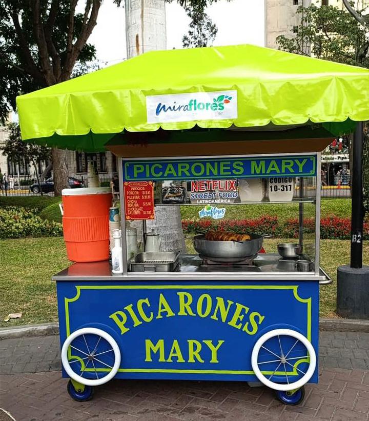 Picarones Mary. El primer carrito picaronero se compró con un préstamo. Hoy, desde Villa María del Triunfo y con la administración de su hijo Josimar, se abastece también el del Parque de la Amistad y el de la primera cuadra de jirón Preciados, en Surco, además de los locales de Av. Aviación 2566, en San Borja, y de Av. Villarán 822, en Surquillo.