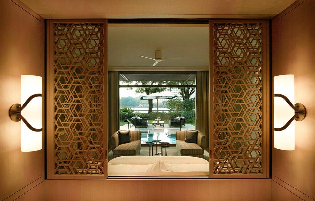 • Habitaciones. El hotel de 10 pisos ofrece 101 habitaciones (desde 61 m²), suites (desde 95 m²) y villas (de 259 m²) para disfrutar una experiencia de lujo y relax contemplativo. Todas tienen ventanas de piso a techo que enmarcan vistas ininterrumpidas del río, las mismas que se pueden apreciar desde la comodidad de la cama, la sala de estar, la terraza con poltrona al aire libre e incluso desde el espacioso baño, donde una moderna bañera se roba el protagonismo; cuentan con accesorios para un completo confort (batas de baño y para levantarse, pantuflas tipo flip-flops, secadora de cabello, etc.) y una completa línea de productos de baño exclusivos en empaques con gráficas de la ciudad. Las villas tienen acceso privado y directo al jardín tropical, cuentan con piscina privada, cocina equipada, sala, comedor, entre otras muchas comodidades.