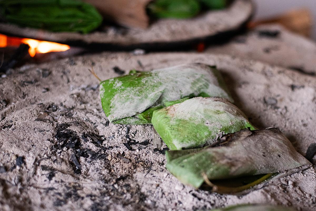 La Morería. Para conocer el origen del bacha’ fuimos donde María Fernández Ico y su hijo Terencio. La técnica ancestral está asociada a una proteína envuelta en hojas de maxán (bijao) y cocida sobre un comal lleno de ceniza. Se usan como insumos el kala’, unos brotes similares al palmito y que son tradicionales del bacha’ de Cahabón; también setas de temporada, gallina, huevos criollos, chicharrón, costilla de cerdo y hasta pescado. Al comerlo, se le rocía pepita de ayote molida o salsas a base de chile cobanero, tomate y cebolla.