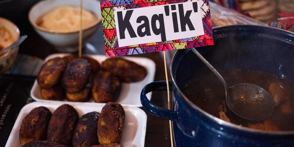 La Casa de los Caldos. Hace dos décadas doña Felisa montó este negocio en San Juan Chamelco, aunque su historia culinaria arrancó siendo muy joven. En su cocina las ollas humean duro mientras prepara su caldo de chunto, el tradicional Kaq’ik’, basado en la receta de las matriarcas, que demanda cariño y dedicación. A diario elabora este sopón que sirve con arroz y tamalitos (lanquineros, shepitos, siete camisas y shutes). Tiene también tayuyos de piloy y de hierba, tasajo (guiso de carne en salsa picante de tomate y chile cobanero) y ti’u cobanero (un recado espeso a base de caldo de chompipe) y, para beber, café y cacao.