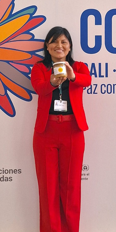 Enthusiastic and deeply committed, Ysabel is a Quechua-speaking descendant from the district of Inkawasi in the northern Andes. She studied chemical engineering and eventually became an eco-entrepreneur, meliponiculturist, and holistic beekeeper. She has gained experience in project formulation, sustainable food systems, and mountain ecosystem restoration—credentials that earned her recognition as a Mountain Ecosystem Restoration Guardian by the Global Landscapes Forum in 2023. In 2024, she received the MIDORI Prize for Biodiversity in Cali, Colombia (during COP16), an award given to leaders who make significant contributions to the conservation and sustainable use of biodiversity. In addition, due to her commitment to biodiversity conservation in Peru, she received the Outstanding Young Conservationist award in the Carlos Ponce del Prado Conservation Award. She has also represented her cause at major events like Terra Madre, Slow Food Salone del Gusto in Turin, Italy; the FAO Global Forum on Food in Rome in 2023; and the World Bank Land Conference in New York in 2024.