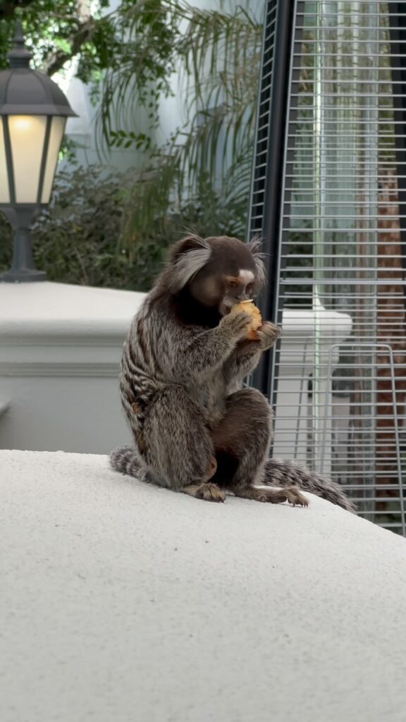 Entre los servicios que se pueden programar están las catas de vino en la bodega del hotel, donde podrán probar desde vinos brasileños hasta premier crus, o dedicar un momento al tradicional té de la tarde, servido con vistas al parque. Eso sí, cuidado con los visitantes silvestres: aves y monos hacen de la suyas libremente por los jardines.