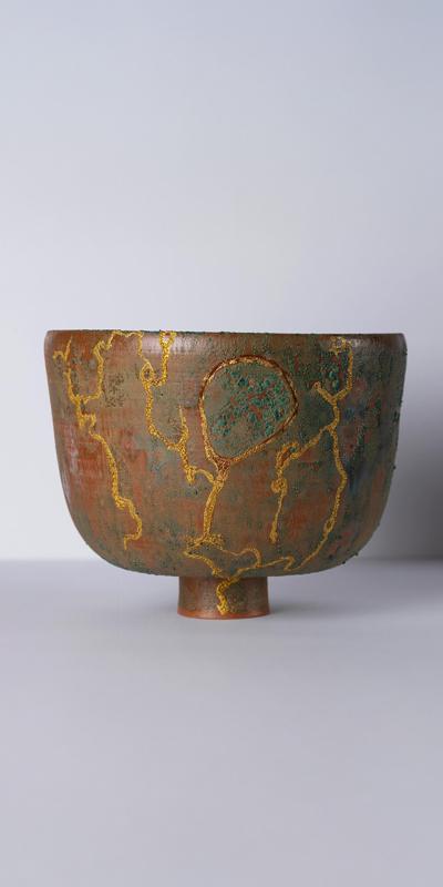 Several years ago, she returned to Peru with the desire to be a prophet in her own land. Her debut was at the Museum of Contemporary Art with a two-person installation called “Separación.” She also took part in creating the tableware for the launch of the restaurant Astrid y Gastón at Casa Moreyra, accompanying the menu El Viaje. Her first solo show was held at the auditorium of the Peruvian-Japanese Cultural Center with “Resilience,” a collection of 25 pieces made using the kintsugi technique (broken vessels repaired with gold, silver, or platinum powder), an allegory of personal renewal that exposes the scars life leaves over the years.